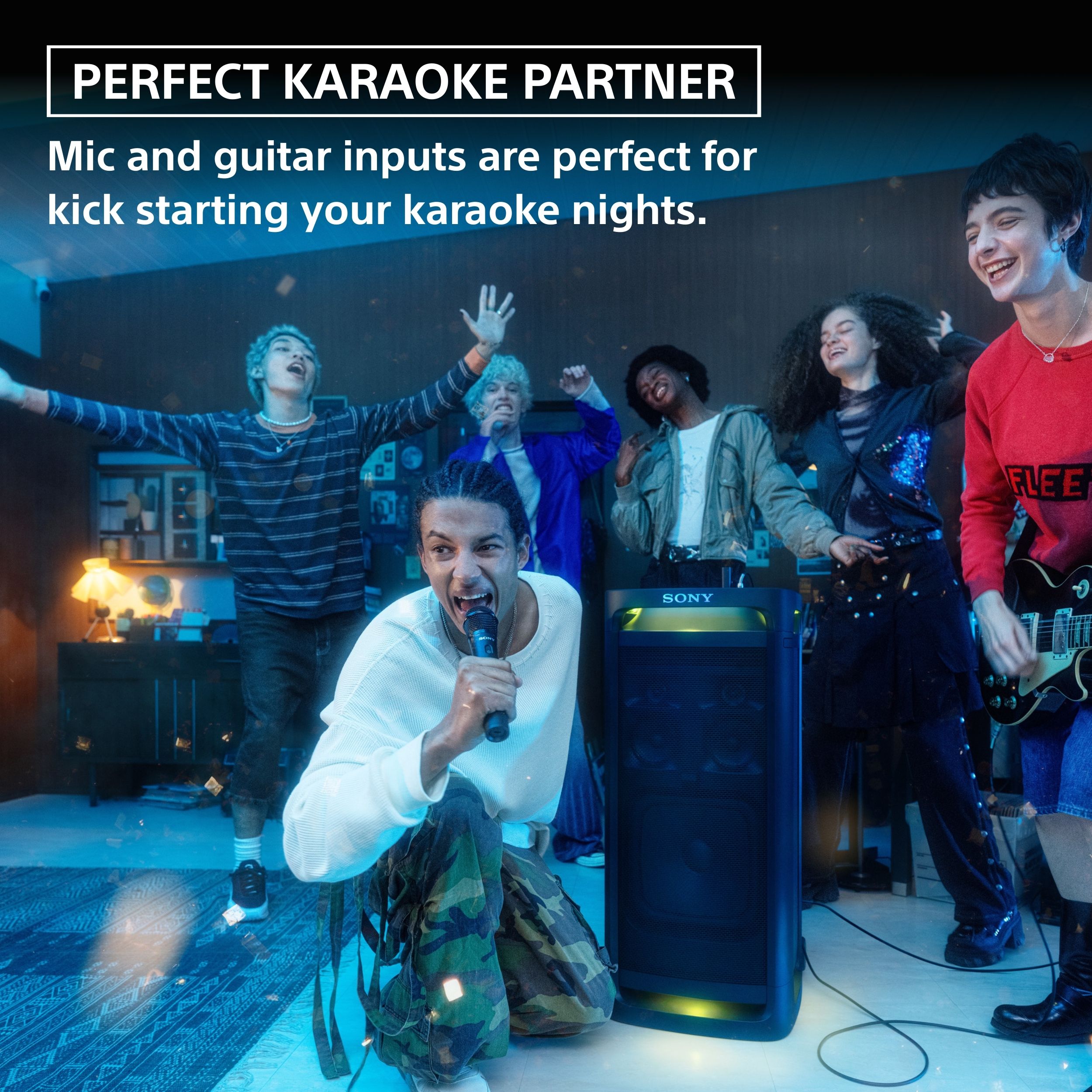 Sony Tower 9 Bluetooth Party Speaker brings energy and excitement to every event. Enjoy ULT Power Sound with deep, rich bass and switch between ULT1 and ULT2 modes for your perfect sound. With up to 25 hours of battery life and quick charging, the music never stops. It’s a 360º Party Sound with X-Balanced Speaker Unit and multiple tweeters delivers clear audio in every direction. Designed with IPX4 splash resistance, it’s ready for any party setting. Features like karaoke mode, 10-band EQ, and TV Sound Booster add more fun. Move it anywhere with built-in wheels and a handle for easy portability.